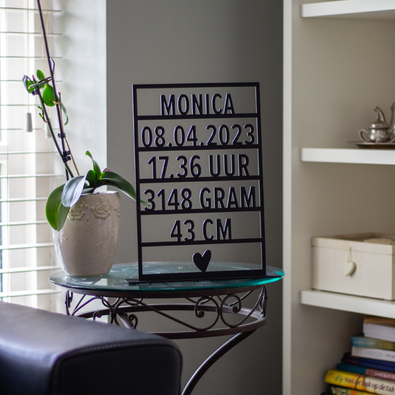 Een geboortekaartje door de brievenbus. Dat betekent dat de baby is eindelijk geboren! Je weet dat je binnenkort een afspraak kan gaan maken om op kraamvisite te gaan. De zoektocht naar een persoonlijk geboorte cadeau is dus begonnen. Wat is nu mooier om de geboortegevens van de baby te verwerken in een gepersonaliseerd kraamcadeau? Echt een persoonlijk leuk origineel kraamcadeau! Een houten geboortegegevens cadeau met de naam, geboortedatum, tijd, gewicht en lengte voor de kers verse ouders die dit cadeau een mooie plek in hun huis kunnen geven. De geboortegegevens op hout als gepersonaliseerd babycadeau zal vast en zeker goed worden ontvangen. Het is namelijk een cadeau dat erg leuk is om te geven en om te krijgen!