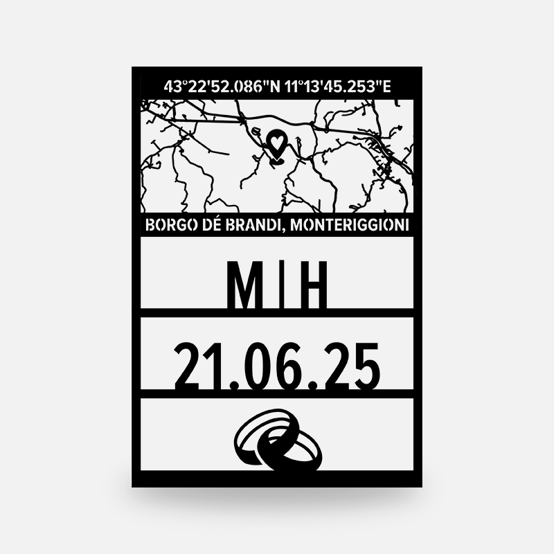Verras een bruidspaar met een uniek en onvergetelijk geschenk: een houten bordje met de plattegrond van hun trouwlocatie. Dit persoonlijk cadeau voor de bruiloft bevat de exacte coördinaten van de droomlocatie, de naam van de locatie met de bij behorende plaats, de initialen van het bruidspaar én natuurlijk de trouwdatum. Zo ontstaat een prachtig aandenken dat altijd hoog in de herinneringen blijft staan.